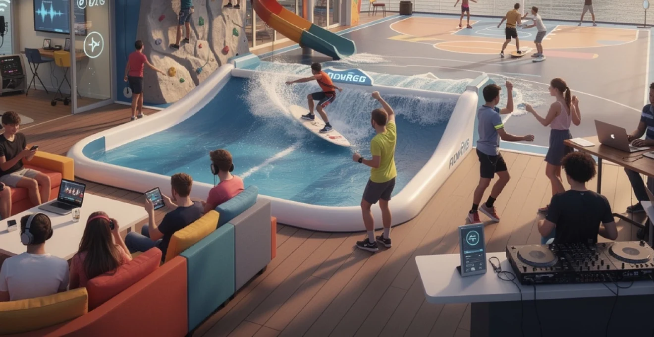 Les simulateurs de surf FlowRider, présents sur plusieurs navires Royal Caribbean, sont devenus des incontournables pour les ados en quête de défis. Grâce à un flux d’eau puissant qui reproduit une vague artificielle, ils peuvent s’initier au bodyboard ou au surf dans un cadre sécurisé, encadrés par des instructeurs spécialisés. Les chutes sont fréquentes, mais font partie du jeu et contribuent à l’ambiance détendue et rieuse autour de la zone.