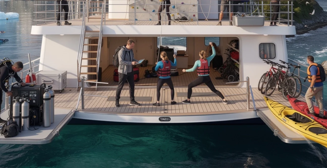 Pour répondre aux exigences des croisières sportives, les armateurs et opérateurs spécialisés investissent dans des équipements nautiques de plus en plus sophistiqués. L’objectif est double : garantir la sécurité des activités physiques en mer et optimiser l’expérience des voyageurs en leur offrant un accès simplifié aux sports pratiqués. Comme dans une base de plein air flottante, chaque zone du navire est pensée pour une fonction précise, de la préparation du matériel de plongée à la mise à l’eau des kayaks ou des annexes rapides.
